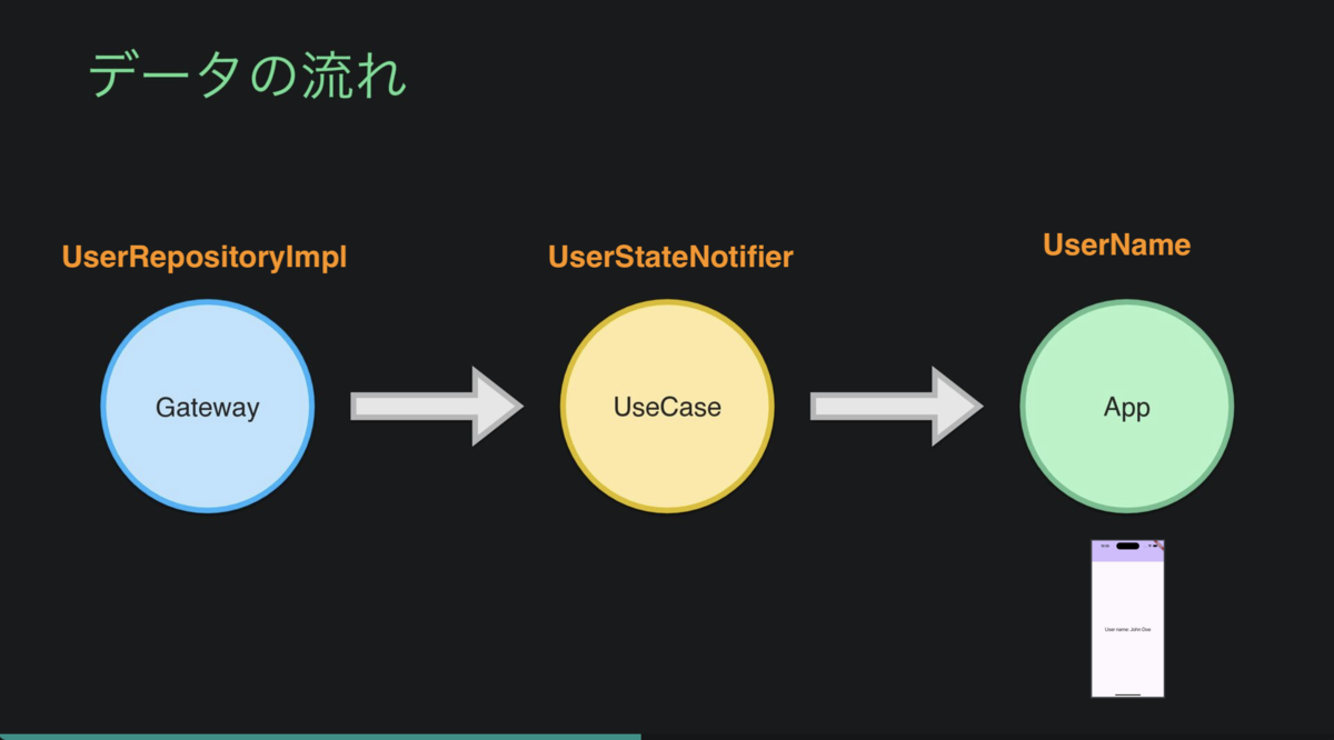 本セッションではクリーンアーキテクチャを例に、riverpodを使った簡単なコードで説明するセッションでした。